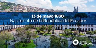 La República del Ecuador nació como Estado el 13 de mayo de 1830, tras concluir un período de inestabilidad política luego del proceso de independencia de España que culminó en la gran batalla de Pichincha el 24 de mayo de 1822